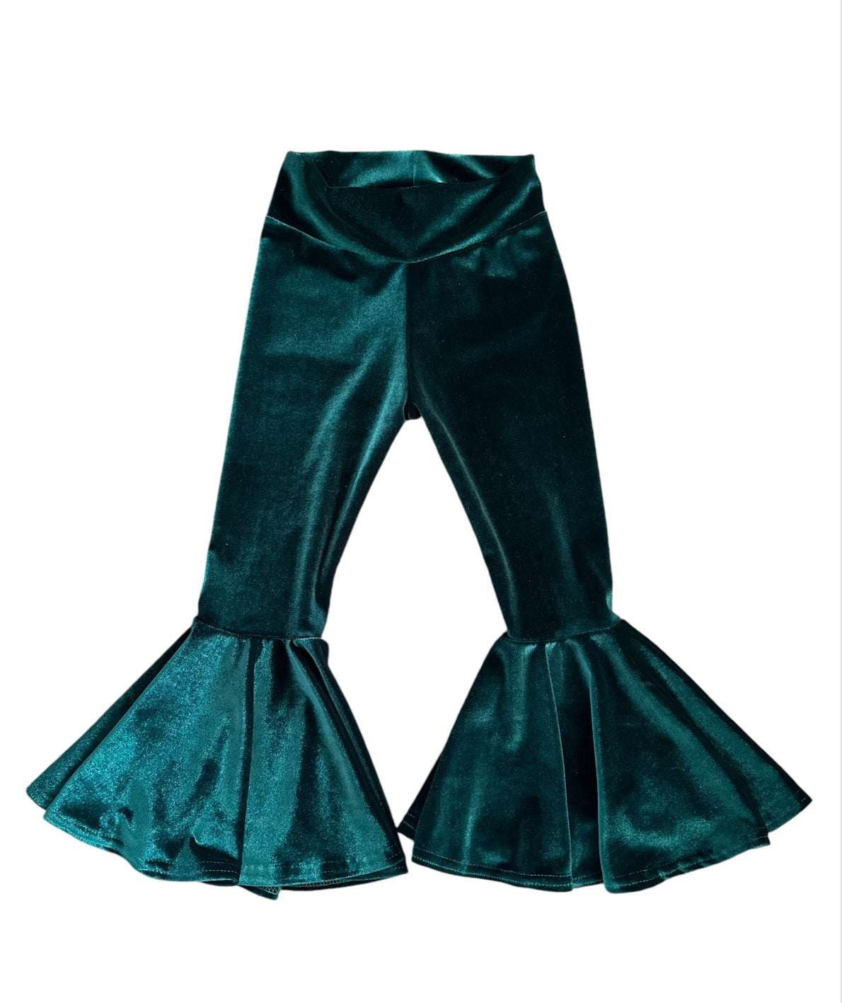 • Load image into Gallery viewer, Hunter Green Velvet Bell Bottoms