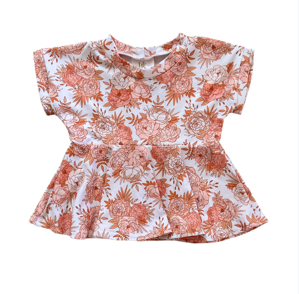 Cute little short sleeve peplum top made with the softest double brushed poly. This listing is for the top only but it looks super cute with our light taupe cable knit flow pants(see photo 2).